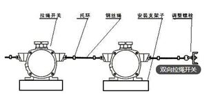 拉繩兩邊的開關應安裝在輸送機維修通道,安裝位置應確保維修人員在緊急情況下操作方便。