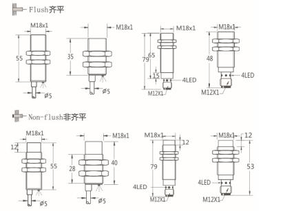 Thread size / 螺紋尺寸:    M18屏蔽式  /  M18非屏蔽式