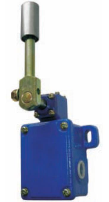 行程開關(guān)主要由接觸組、凸輪軸、殼替等組成,觸頭分斷靠操動機構(gòu)帶動凸輪軸的轉(zhuǎn)動來實現(xiàn)。觸頭組結(jié)構(gòu)均為轉(zhuǎn)動式雙斷點。桿式、叉式、重錘式行程開關(guān)可安裝一組或二組接觸組,組成單回路(一常閉)或雙回路(一常開、一常閉)的開閉形式、實際應(yīng)用過程中用戶可根據(jù)需要,只要調(diào)整凸輪角度,即可改變觸頭開閉形式。選轉(zhuǎn)式行程開關(guān)可同時安裝四組接觸組,使其上升或下降都可有二級保護。旋轉(zhuǎn)式行程開關(guān)實際應(yīng)用中如需控制起升機構(gòu)的升程只要將定位銷子拔下,轉(zhuǎn)動螺母,調(diào)整絲桿螺母機構(gòu),即可改變起升機構(gòu)的升程。