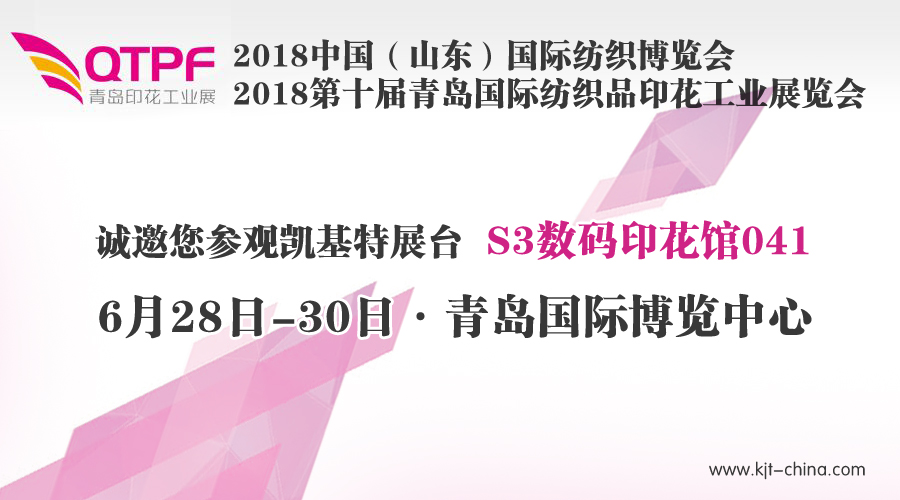 您好!感謝您一直以來對我們的支持。南京凱基特電氣有限公司將于2018年6月28日-30日參加在青島國際博覽中心舉行的2018第十屆青島國際紡織品印花工業展覽會。屆時歡迎您的來訪!