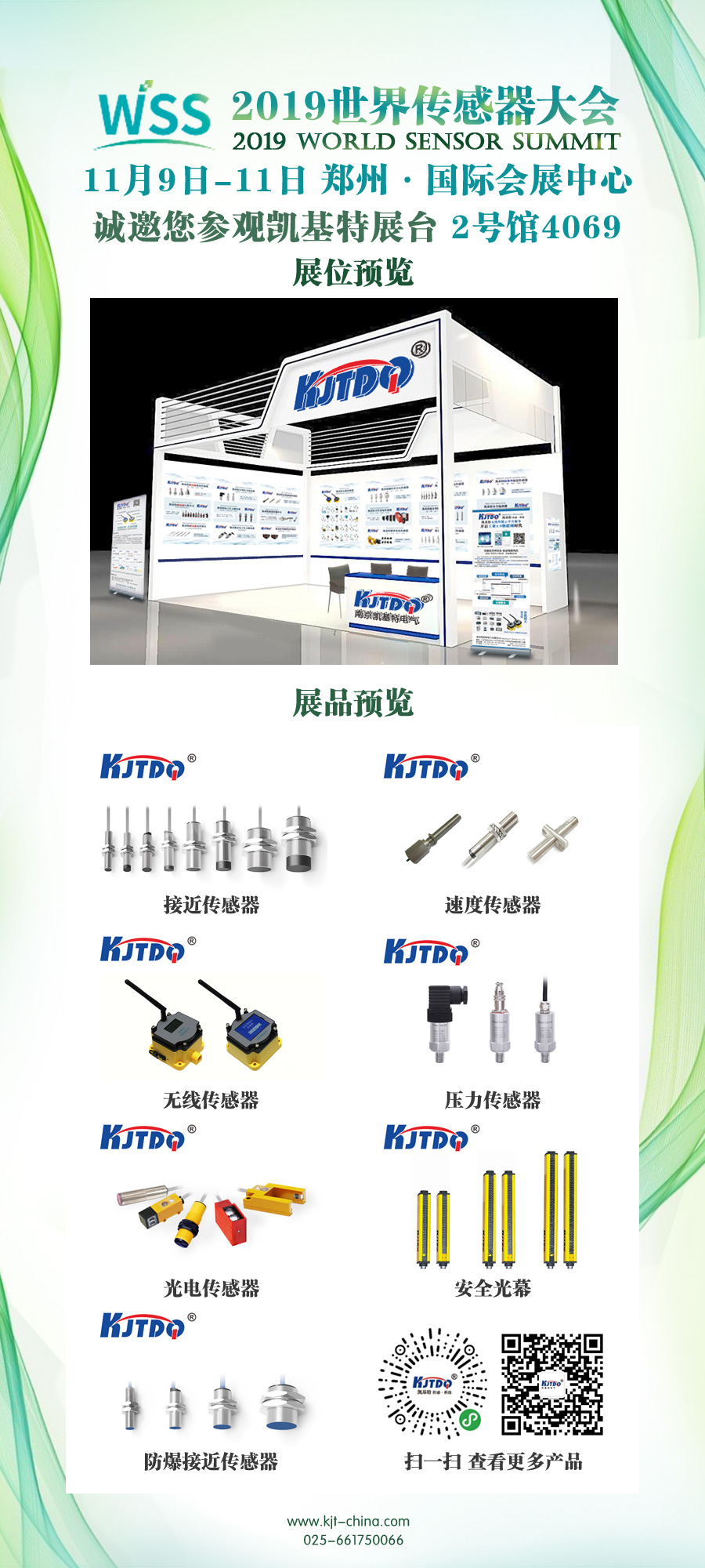 您好!感謝您一直以來對我們的支持。南京凱基特電氣有限公司將于2019年11月9日-11日參加在鄭州國際會展中心舉行的2019世界傳感器大會暨博覽會。大會將全面展示全球傳感器科技、產業(yè)和應用的適合新成果。凱基特在2號館 4069期待您的光臨!