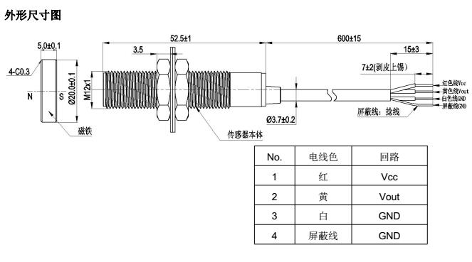 產品名稱:自磁式霍爾高頻轉速傳感器