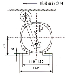●本裝置開關轉換角度為20°,對有傾角的膠帶機可適當調整安裝角度。